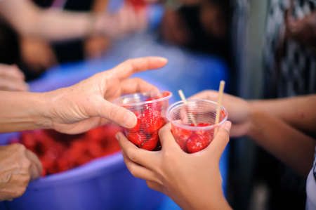 the economic downturn causes food shortages : Donate Food with Love and Hope to the Poor: The concept of food is essential to life: the concept of hope: Hand-feeding to the needy in society : Concept of Feeding