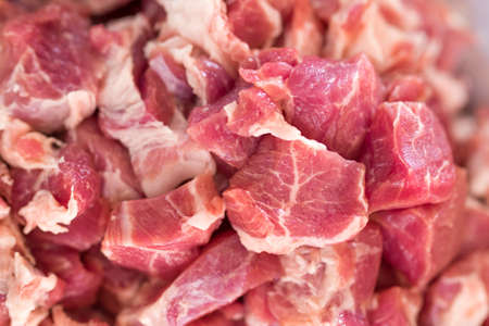 Raw sliced of pork meat background closeup