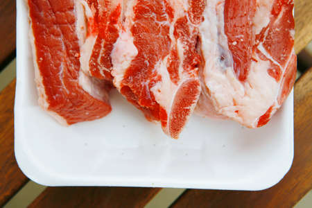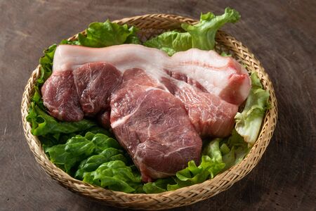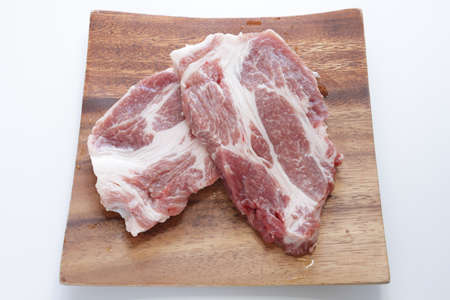 freshness pork slice on wooden plate for cooking ingredient
