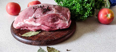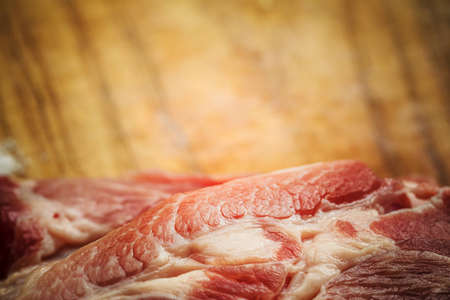Raw, red, fresh meat pork on a cutting board.