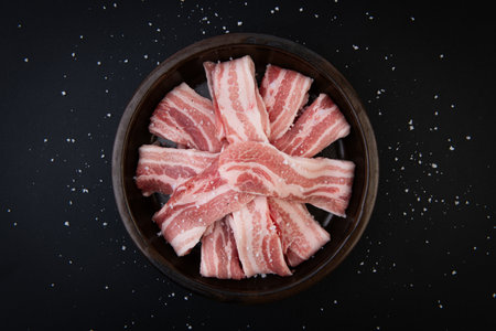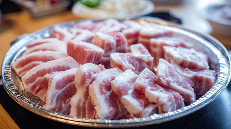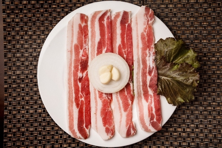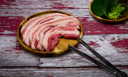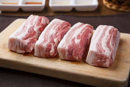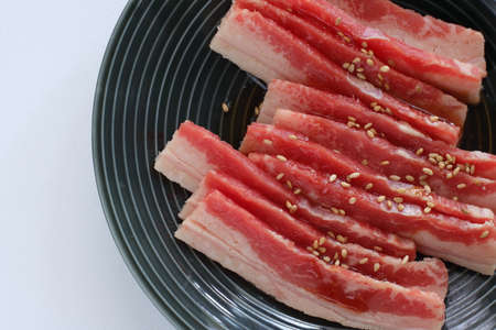 Korean barbecue Saeng Samgyeopsal, raw pork belly