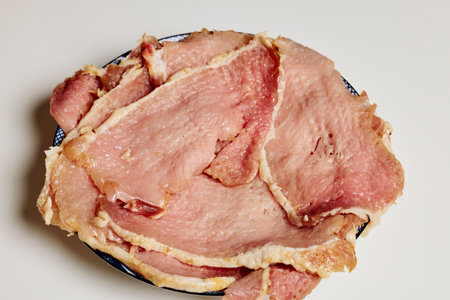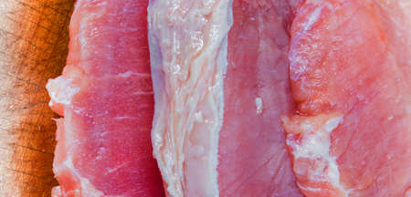 close up slice of raw pork ,soft focus