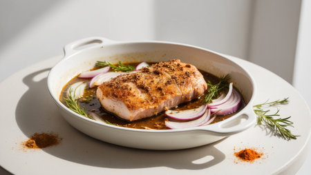 AI Generated. Marinating Pork Fillet with Onion and Spices for Barbecue