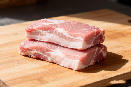 raw fat pork belly on brown paper