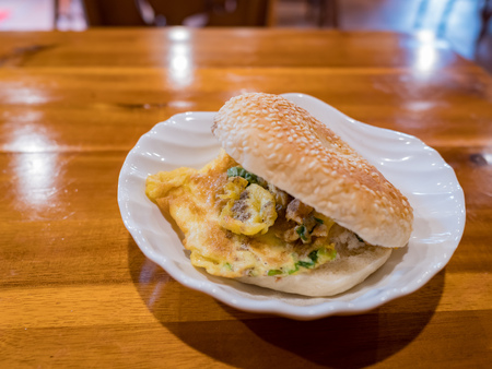 Close up shot of Kompia with fried eggs from Matsu, Taiwan