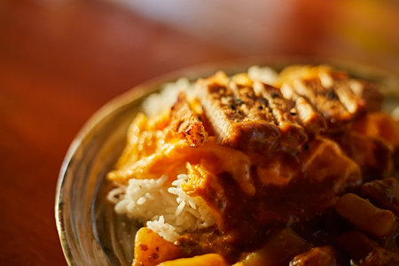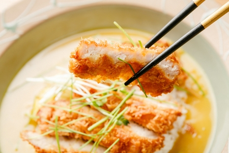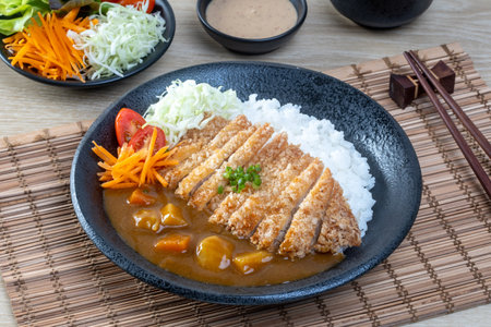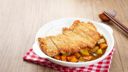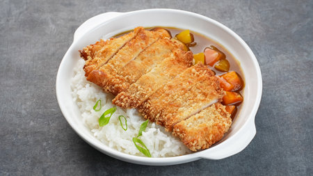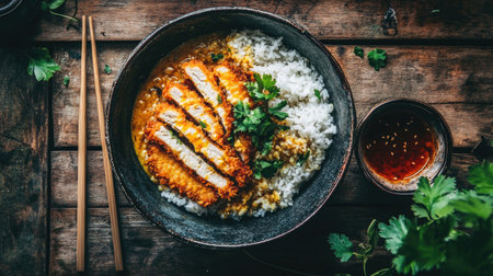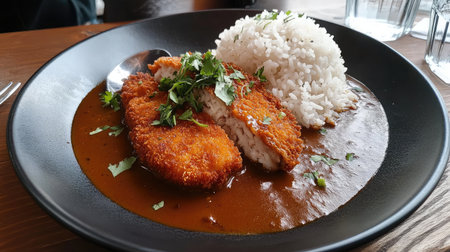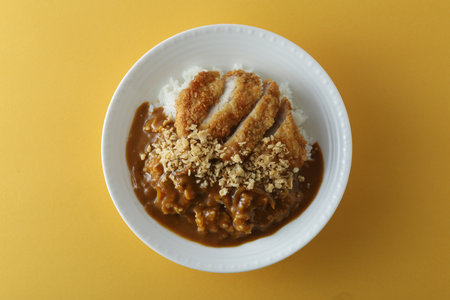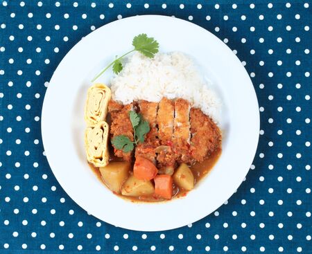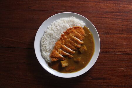 Crispy chicken perked up with an aromatic katsu curry sauce and fragrant fluffy rice, Japanese food