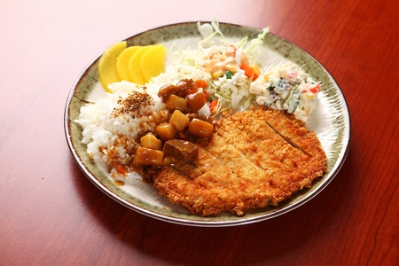 curry rice with tonkatsu fried pork cutlet and creamy omelet - Japanese food style