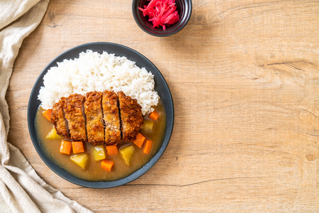Curry rice with fried pork. Japanese food Tonkatsu curry rice.