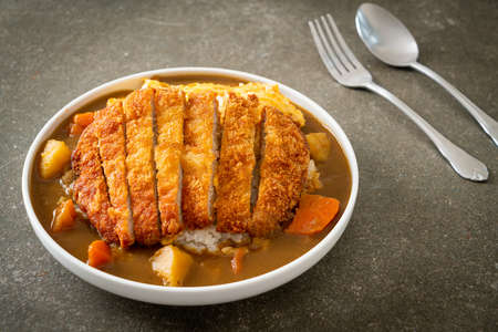Crispy fried pork cutlet with curry and rice - Japanese food style