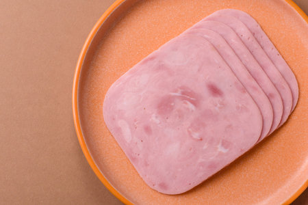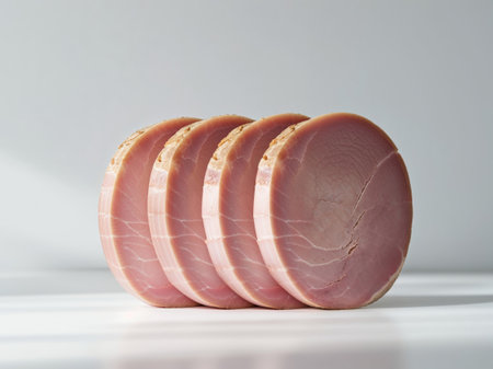 AI Generated. Three round slices of ham with a delicate pink color and visible texture