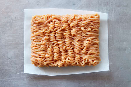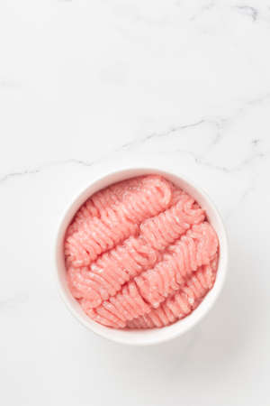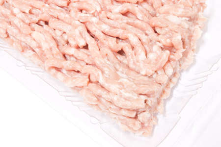 Raw ground chicken for burgers and other food. Raw minced chicken meat as a food background for your design