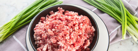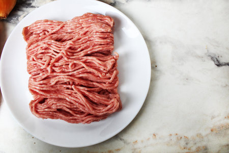 Raw ground beef meat food, ingredient for making cutlets or meatballs. Raw ground beef for your background