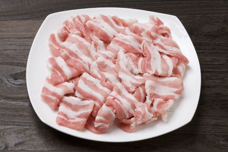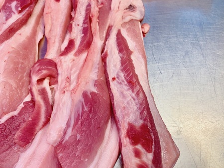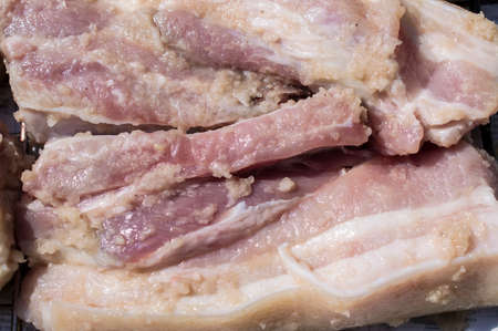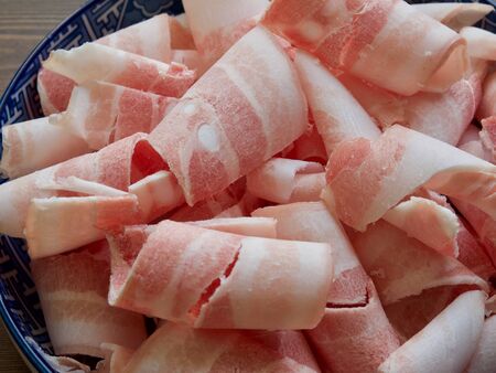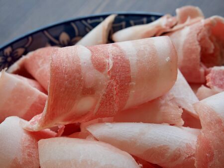 Raw pork. Thinly sliced ​​pork belly. Meat cuts often eaten in Korea