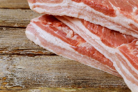 Fresh raw meat pork fresh chop bacon rustic wood background