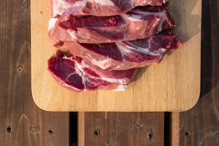 freshness pork slice on wooden plate for cooking ingredient