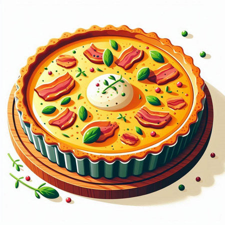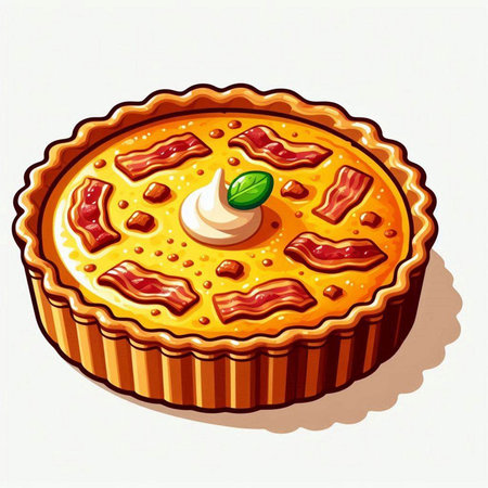 Illustration of a pie with bacon and cream on a white background