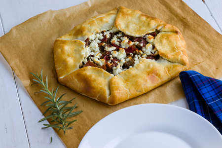 Homemade garlic pie with goat cheese and thyme