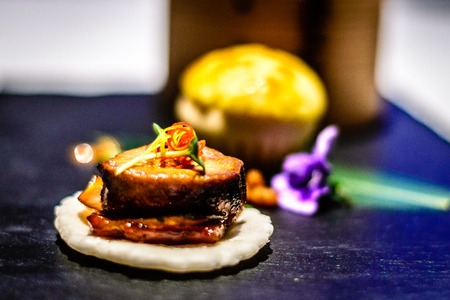 Appetiser Combination Steamed crab roe dumpling Baked barbecued US black pork bun Barbecued duck liver and pork skewe