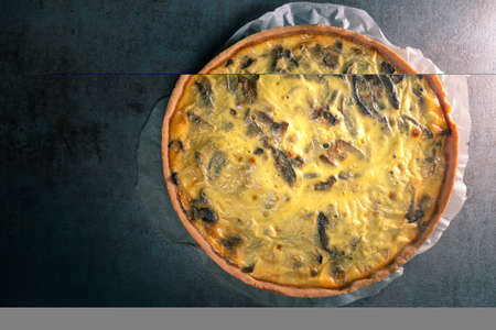 homemade mushroom quiche, selective focus