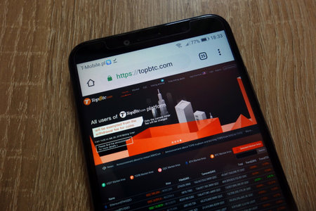 KONSKIE, POLAND - December 16, 2018: TopBtc cryptocurrency exchange website (topbtc.com) displayed on smartphone