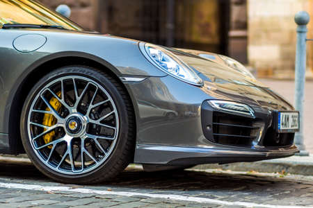 Kiev, Ukraine - September 20, 2017: Close-up shot of modern german sports car Porsche 911