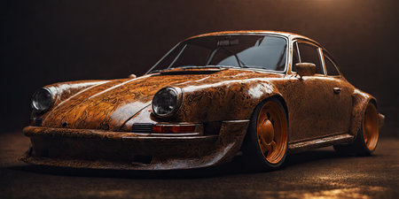 Almaty, Kazahstan - February 12th 2022: Porsche 911 Carrera S expensive cport car beauty shots on the dark background. 3d render