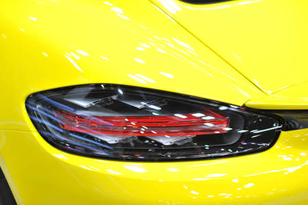 NONTHABURI - NOVEMBER 30: Headlight car, Porsche 718 Cayman on display at Thailand International Motor Expo 2017 on November 30, 2017 in Nonthaburi, Thailand.