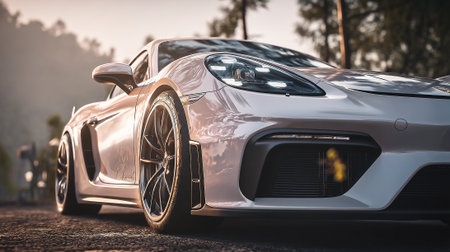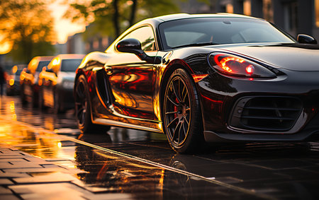 Sleek Car on Asphalt, Displaying Modern Design and Powerful Aesthetics