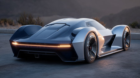 Sleek Futuristic Automobile Design on Asphalt Road, Smooth Edges and Elegant Style