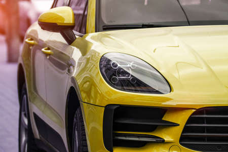 Sport car yellow details lights and mirrors aerodynamics crossover. cleared for commercial use