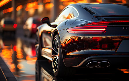 Luxury sports car speeds through city streets at night generated by artificial intelligence