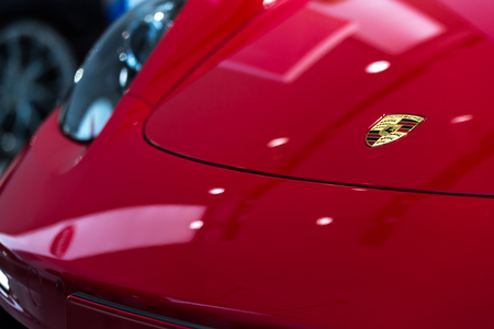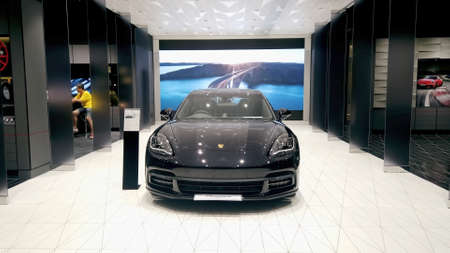 BANGKOK, THAILAND - MAY 4 : Porsche automobile dealership showroom at ICONSIAM. The Iconsiam is the most popular shopping center in Bangkok at Bangkok, Thailand on May 4, 2019