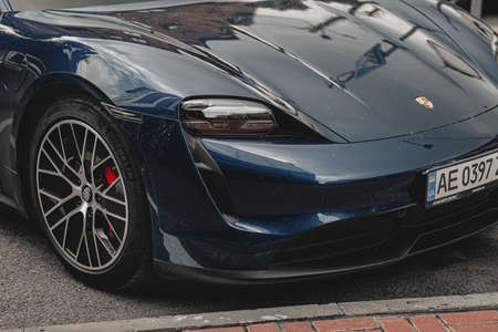 Porsche Turbo S electric car charging with high power charging technology. Russia, Saint-Petersburg. 12 november 2020