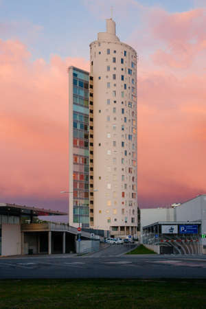 TARTU, ESTONIA - Aug 06, 2015: Tigutorn highrise during sunset in Tartu, Estonia. 2015