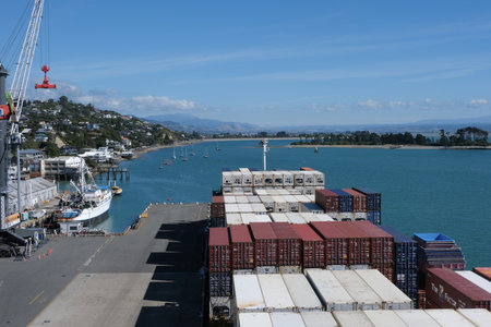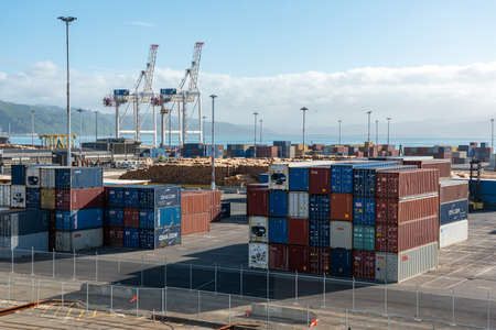 NAPIER, NEW ZEALAND, FEBRUARY 10, 2020: Containers in the port of Napier, New Zealand