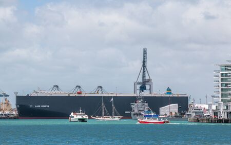 AUCKLAND, NEW ZEALAND, FEBRUARY 20, 2020: Cranes at the port of Auckland, New Zealand