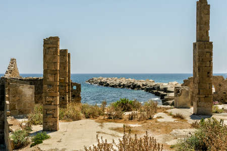 Archaeological excavations. Ruins of ancient Carthage and the Mediterranean Sea. Tunisia