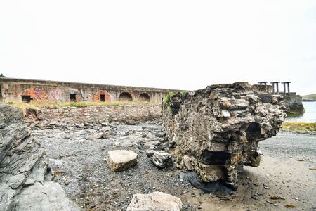 Old abandoned port of the iron mine in Llumeres, Asturias, Spain. Industrial archeology