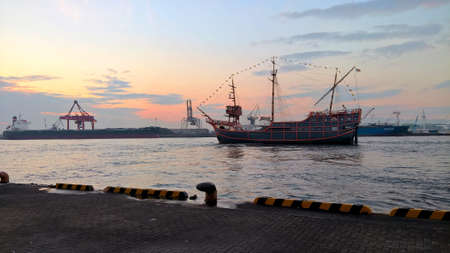 sunset of the Japanese harbor