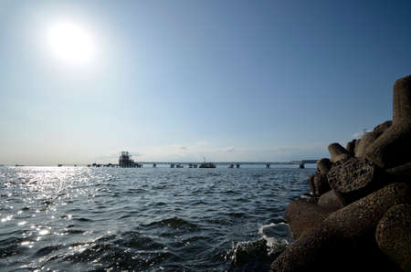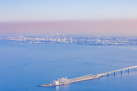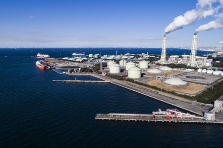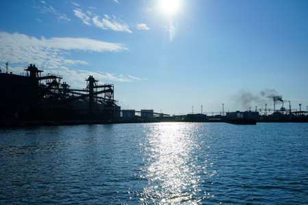 Seaside factory and beautiful sea in Kitakyushu City