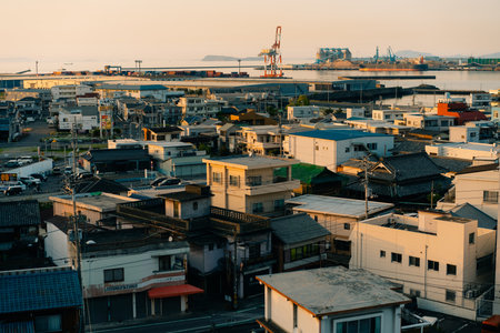 shikokuchuo-shi, ehime, japan - 3 August 2025 City view at sunset. High quality photo