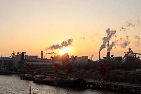 Factory and beautiful sunset in Kitakyushu Industrial Area