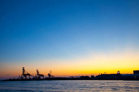 Crane group of Yokohama Port and evening