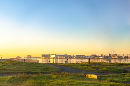 The Keihin industry region. Near the Tokyo Haneda International Airport in the sunrise time. Tokyo, Japan