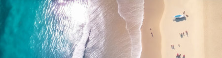soft blur focus.Top view of tropical sea beach in summer.holiday and vacation.long size banner.ai generated images