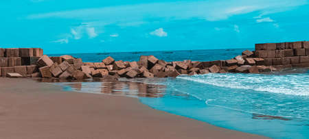 Concrete blocks on the beach of the Pacific Ocean in Costa Rica