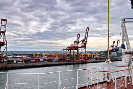AUCKLAND,NZ - OCT 08:Container cranes on Bledisloe Wharf at Ports of Auckland on Oct 08 2013.It's New Zealand's largest commercial port, its turnover of more than NZ20 billion per year