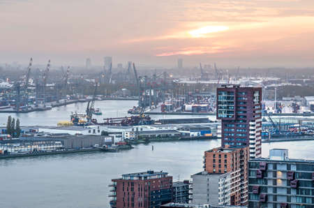 Beautiful sunset in the harbor from Rotterdam in the Netherlands
