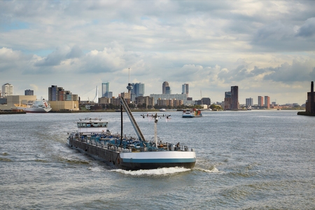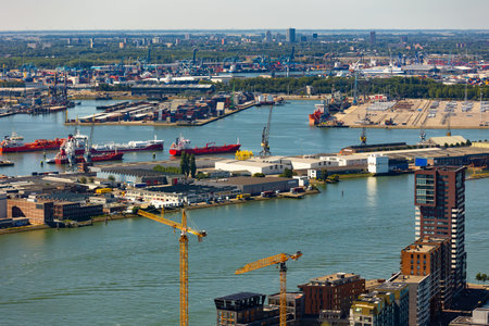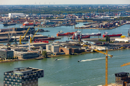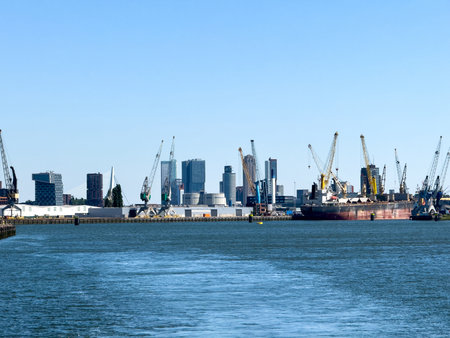 ROTTERDAM, THE NETHERLANDS - AUGUST 9, 2015: View on the Port of Rotterdam, South Holland, The Netherlands. Rotterdam Port is the largest port in Europe.