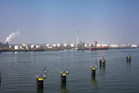 Rotterdam europoort industrial harbor landscape with ships and factories